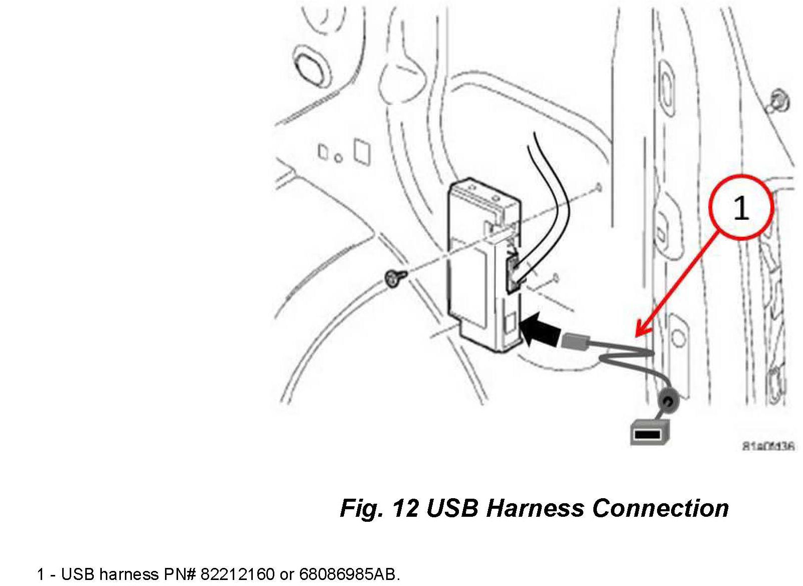 20. Connect the USB harness (PN # 82212160 or 68086985AB.) (Fig. 12).