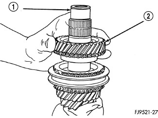 2. Remove synchronizer (4)(Figure 3) and gear using shop press (1).