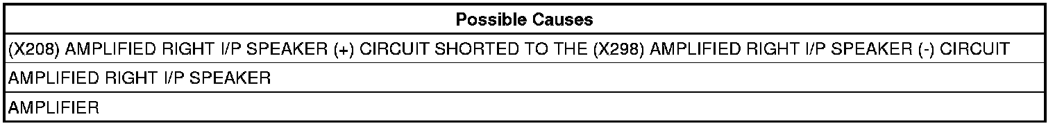 - Repair the (X208) Amplified Right I/P Speaker (+) circuit, and the (X298) Amplified Right I/P Speaker (-) circuit for a short together.