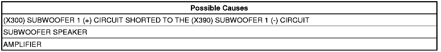 - Repair the (X300) Subwoofer 1 (+) circuit, and the (X390) Subwoofer 1 (-) circuit for a short together.