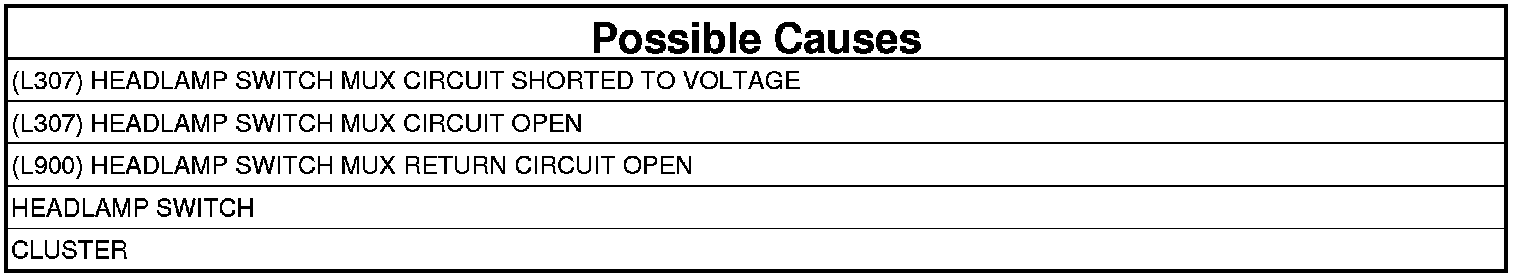 - Repair the open in the (L307) Headlamp Switch MUX circuit.