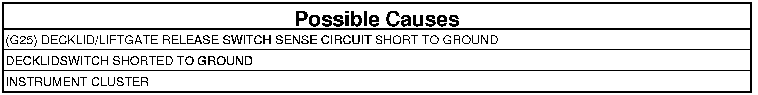 - Repair the (G25) Decklid/Liftgate Release Switch Sense circuit for a short to ground.