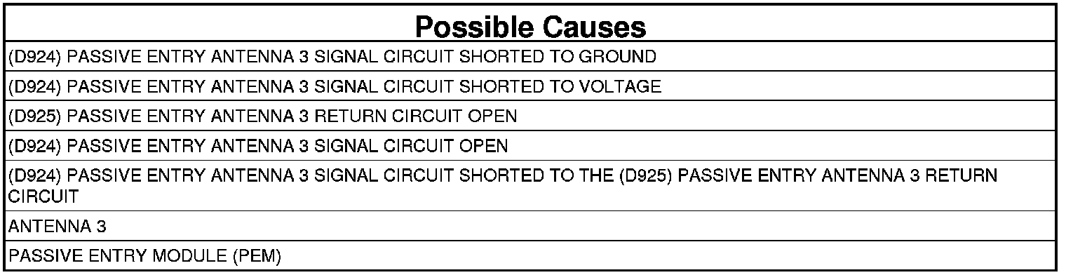 - Repair the short to voltage in the (D924) Passive Entry Antenna 3 Signal circuit.