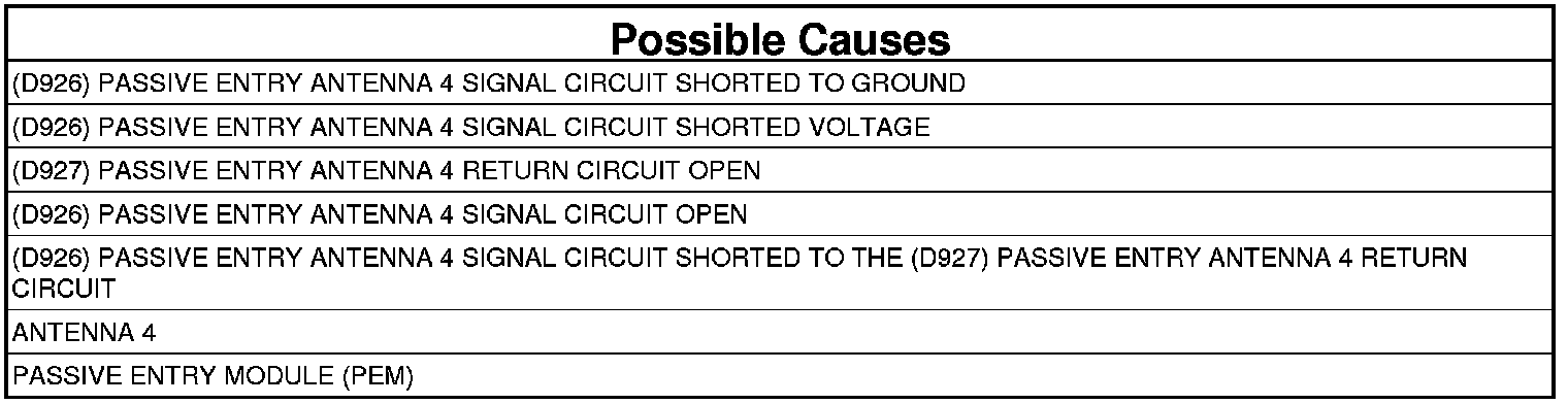 - Repair the short to voltage in the (D926) Passive Entry Antenna 4 Signal circuit.