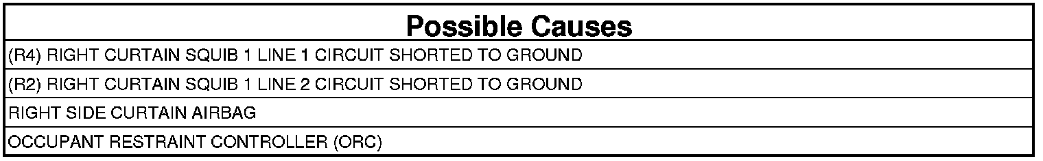 - Repair the Right Curtain Squib 1 circuits with a resistance below 10K Ohms for a short to ground.