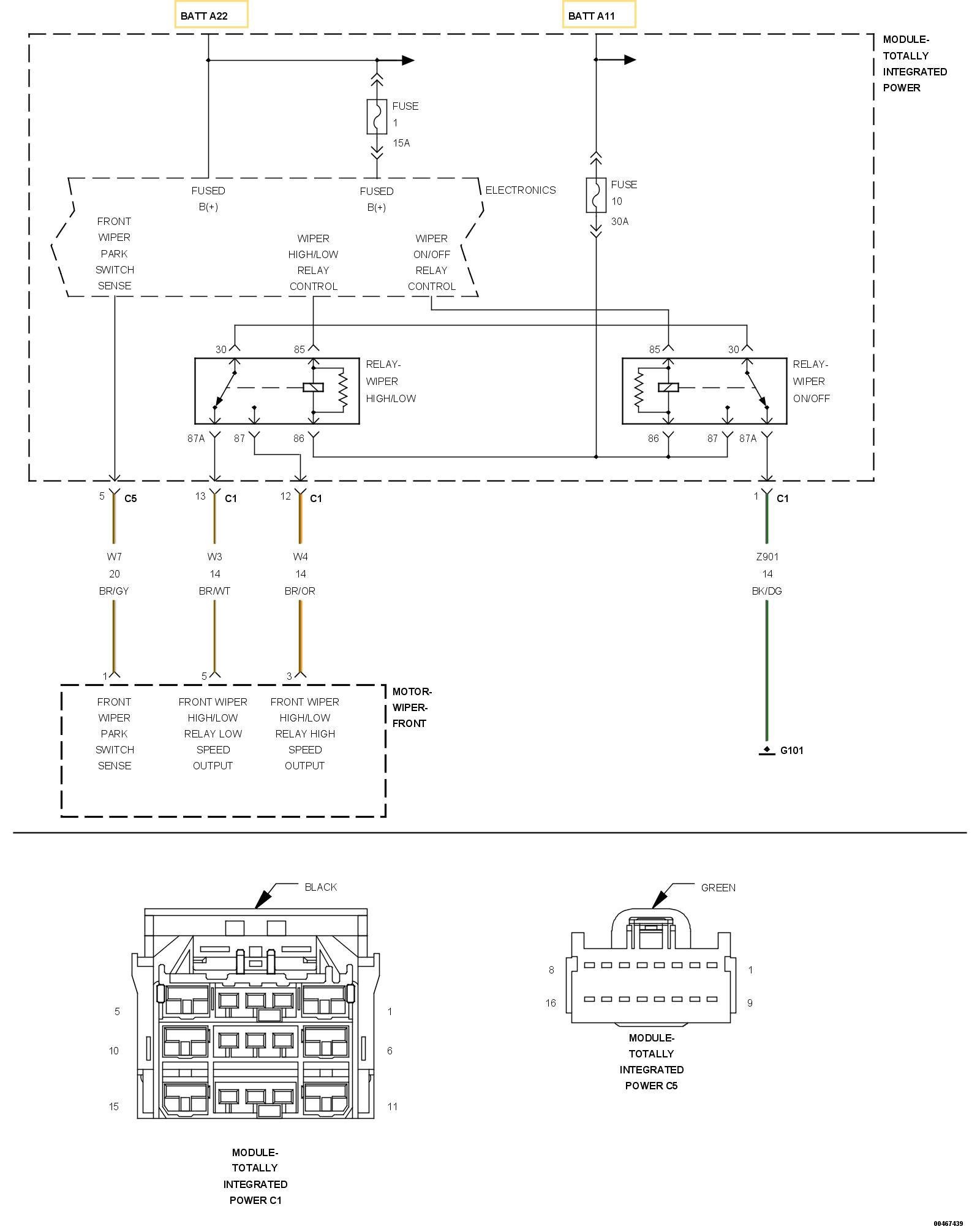 - Repair the (W7) Front Wiper Park Switch Sense circuit for a short to ground condition.