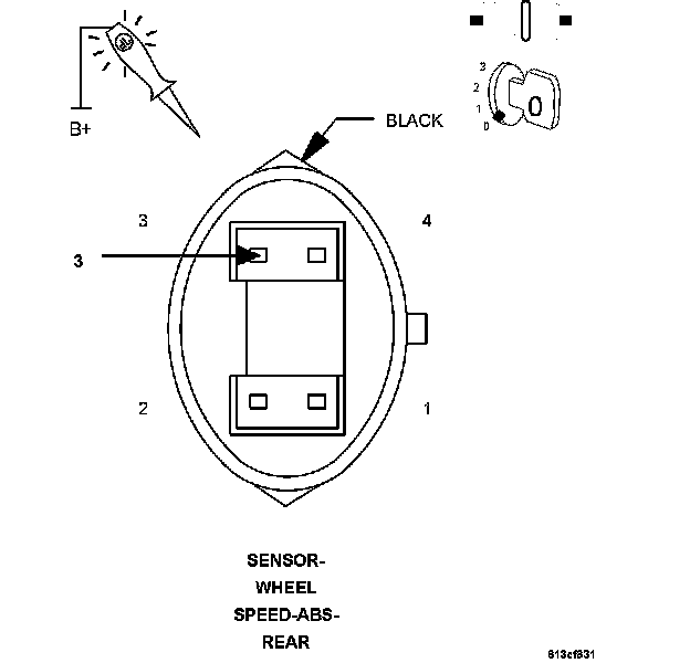 2. Using a 12-volt test light connected to 12 volts, probe the (B3) Left Rear WSS Signal circuit.