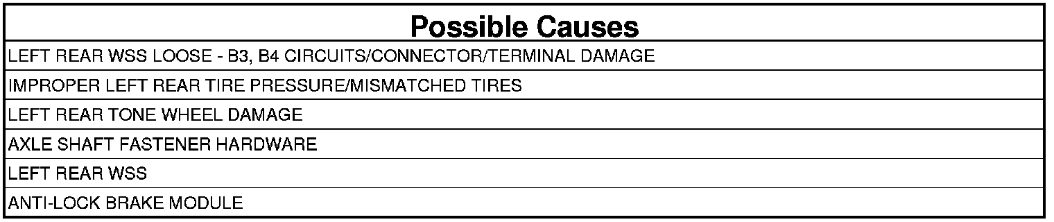 When the Left Rear Wheel Speed Sensor (WSS) reading is different from the readings received from the other sensors at a vehicle speed above 25 mph (40 km/h). The Anti-Lock Brake Module compares WSS readings from side-to-side on an axle and front-to-rear.