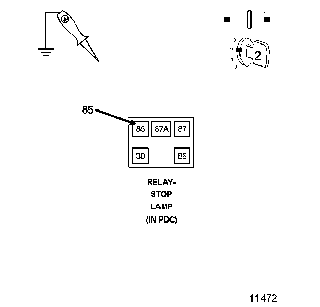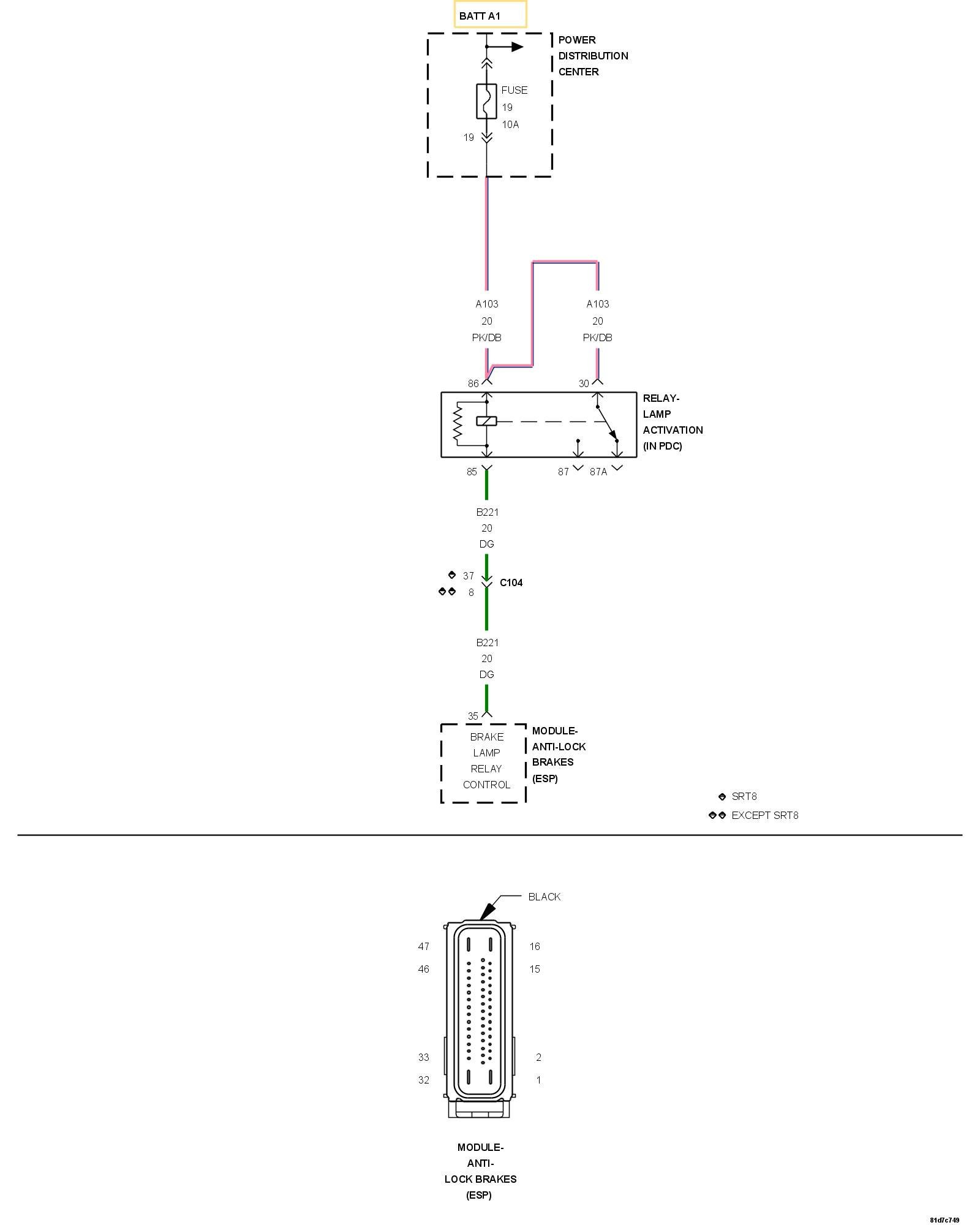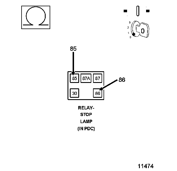 2. Measure the resistance across the relay between the (B221) Brake Lamp Activation Relay Control Circuit and the (A103) Fused Ignition switch Output.