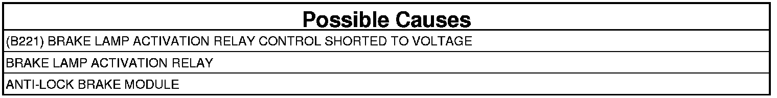 - Repair the short to voltage in the (B221) Brake Lamp Inhibit Relay Control circuit.