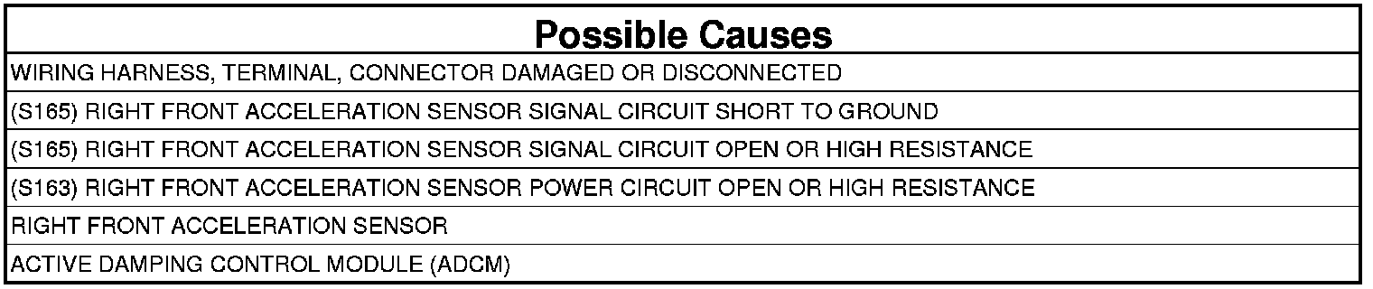- Repair the (S165) Right Front Acceleration Sensor Signal circuit for a short ground.