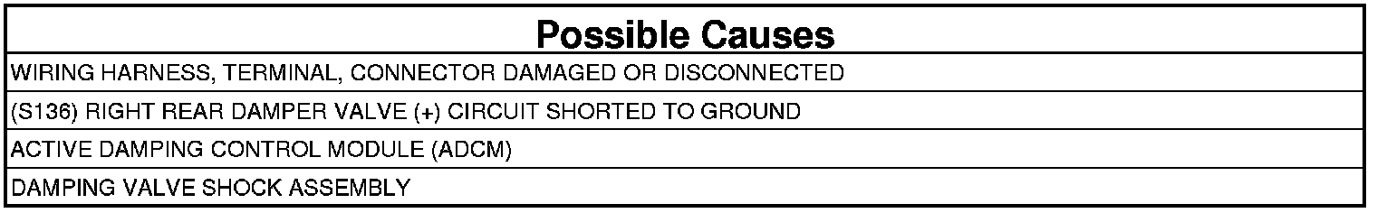 - Repair the (S136) Right Rear Damper Valve (+) circuit for a short ground.