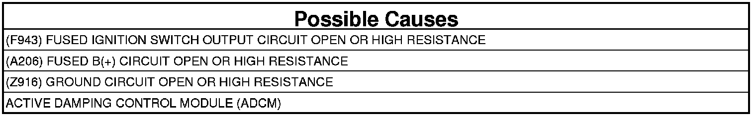 The Active Damping Control Module (ADCM) detects the system voltage has increased above 16 Volts for more than 15 seconds.