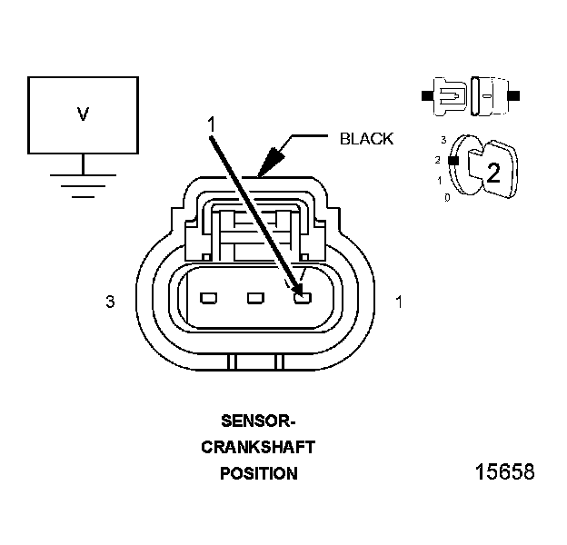 5. Measure the voltage of the (F855) 5 Volt Supply circuit at the Crankshaft Position Sensor harness connector.