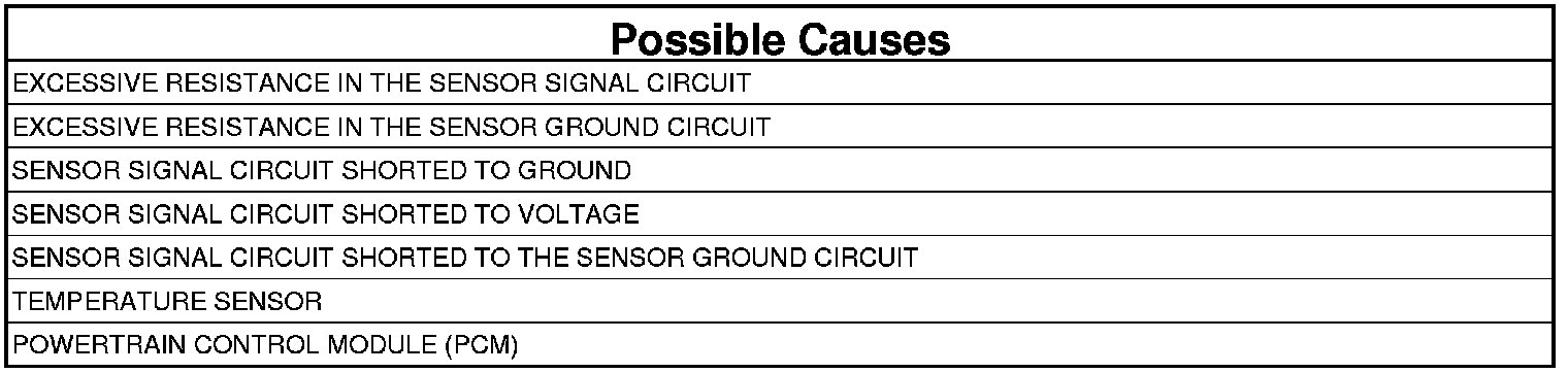- Repair the excessive resistance in the Temperature Sensor Signal circuit.