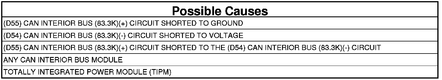 The Heated Seat Module (HSM) detects that the (D55) CAN Interior Bus (83.3K)(+) circuit or (D54) CAN Interior Bus (83.3K)(-) circuit is shorted.