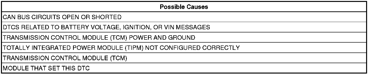 Bus messages not received from the Transmission Control Module (TCM) for approximately 500ms.