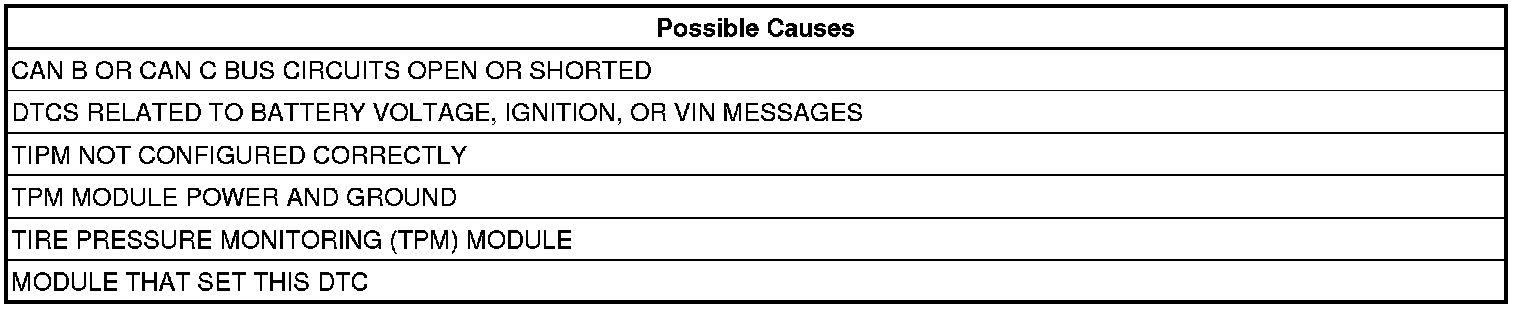 Bus messages not received from the Tire Pressure Monitoring (TPM) Module for approximately 500 ms.