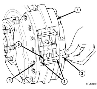 6. Press on lower end of spring clip (5) until it touches brake rotor.