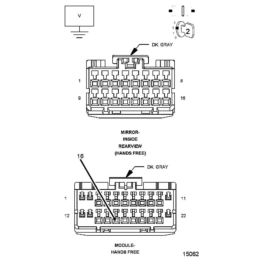 2. Measure the resistance of the (X712) Microphone 1 IN (+) circuit between the HFM C1 connector and the Inside Rearview Mirror connector.