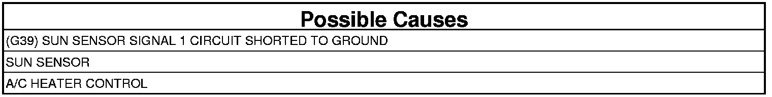 - Repair the (G39) Sun Sensor Signal 1 circuit for a short to ground.