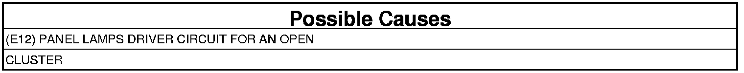 - Repair the (E12) Panel Lamps Driver Circuit for an open.