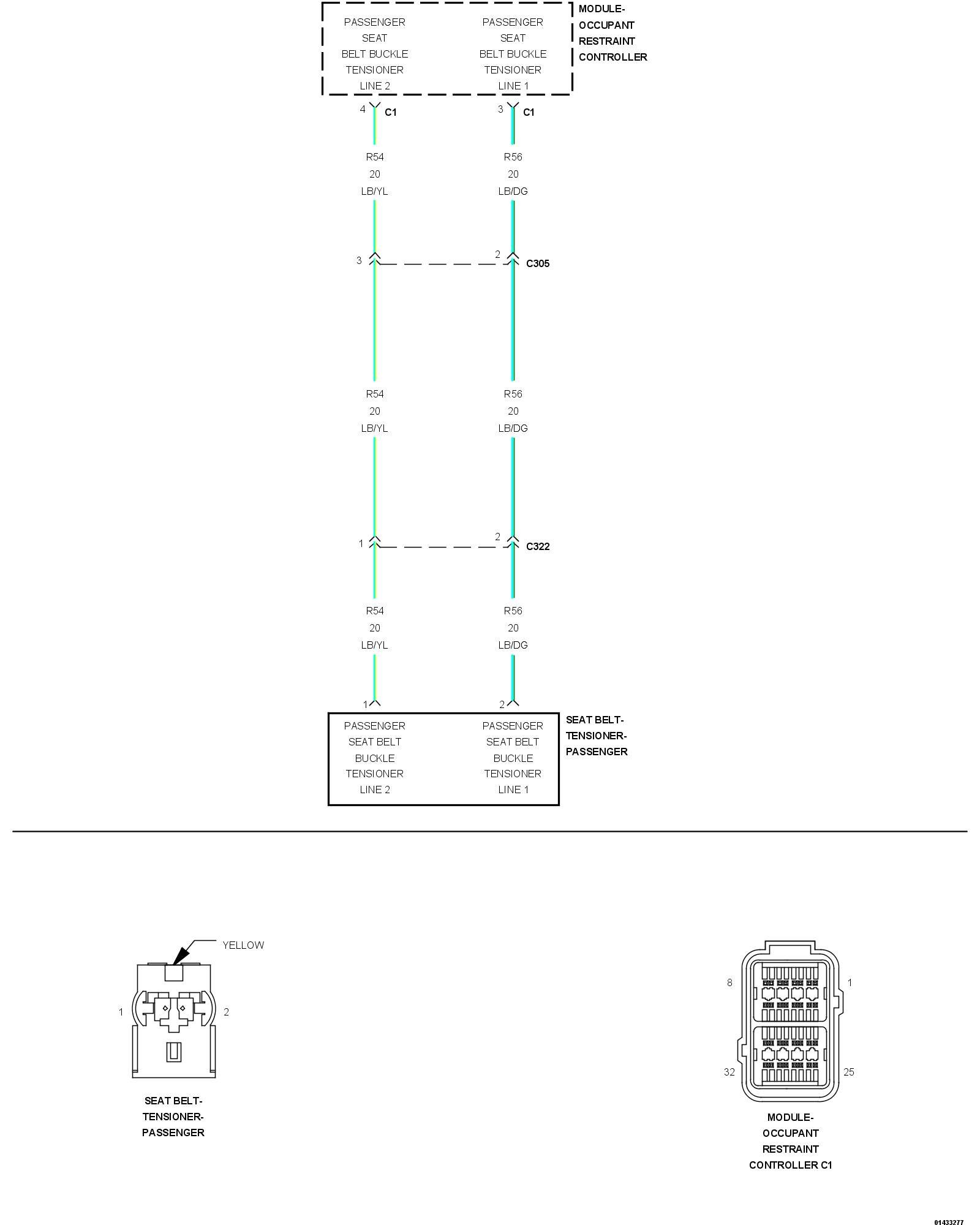 - Repair the (R56) Passenger Seat Belt Buckle Tensioner Line 1 circuit for a short to the (R54) Passenger Seat Belt Buckle Tensioner Line 2 circuit.