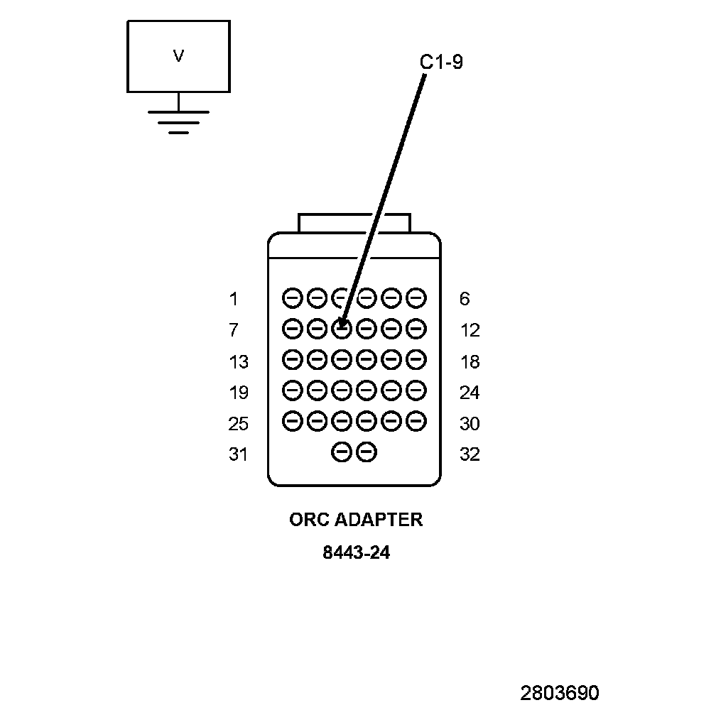 4. Measure the voltage between ground and the (R283) Occupant Detector Signal Circuit at the appropriate terminal of the (8443-24).
