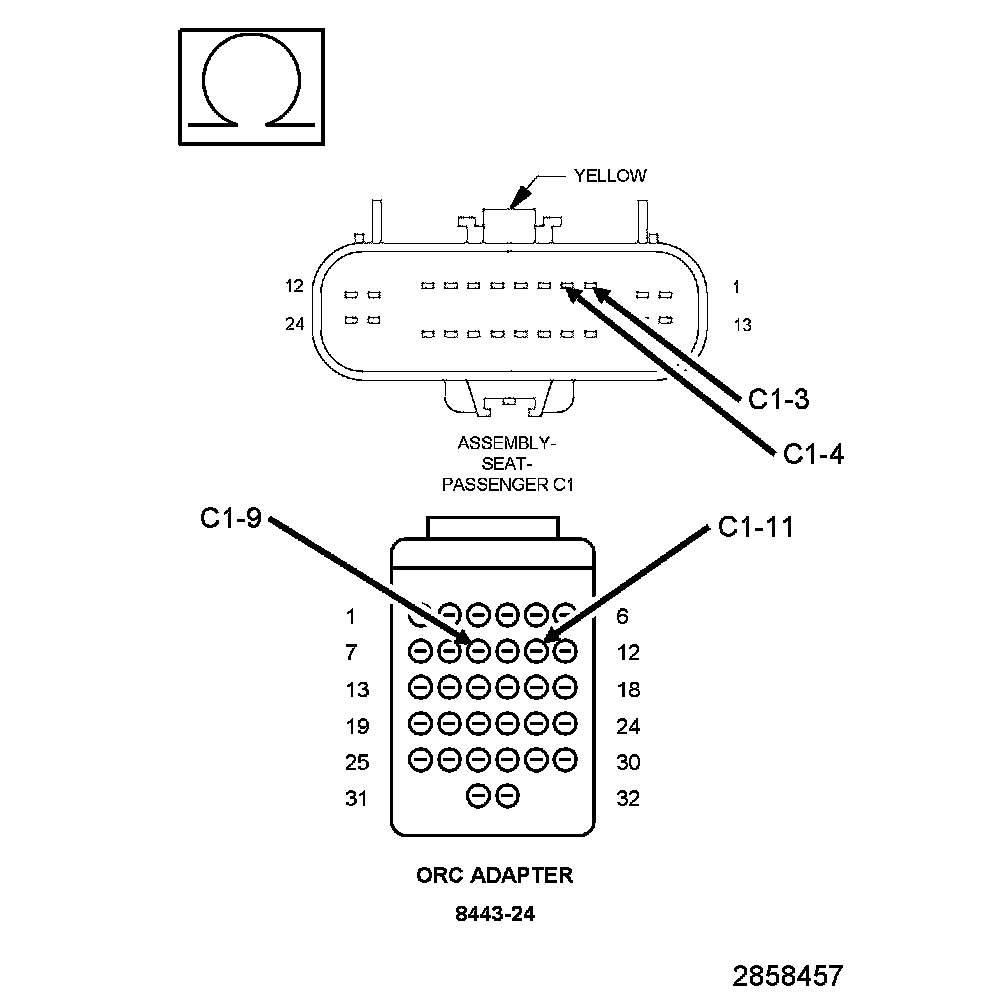 1. Disconnect the passenger seat assembly C1 underseat harness connector.If equipped with the standard key ignition, use this ignition on warning.