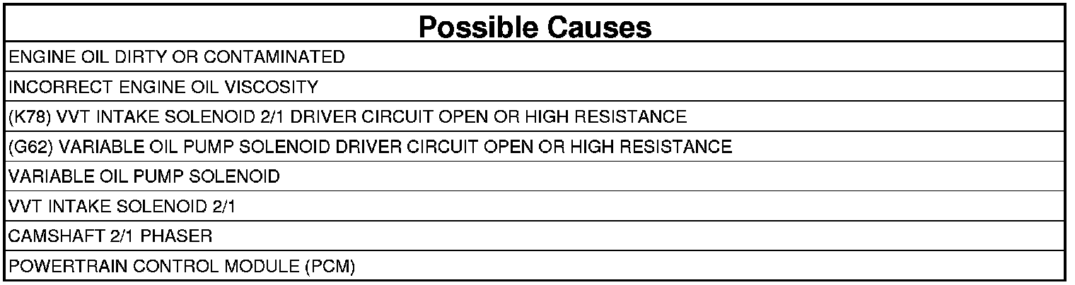 - Repair the (G62) Variable Oil Pump Solenoid Driver circuit for an open circuit or high resistance