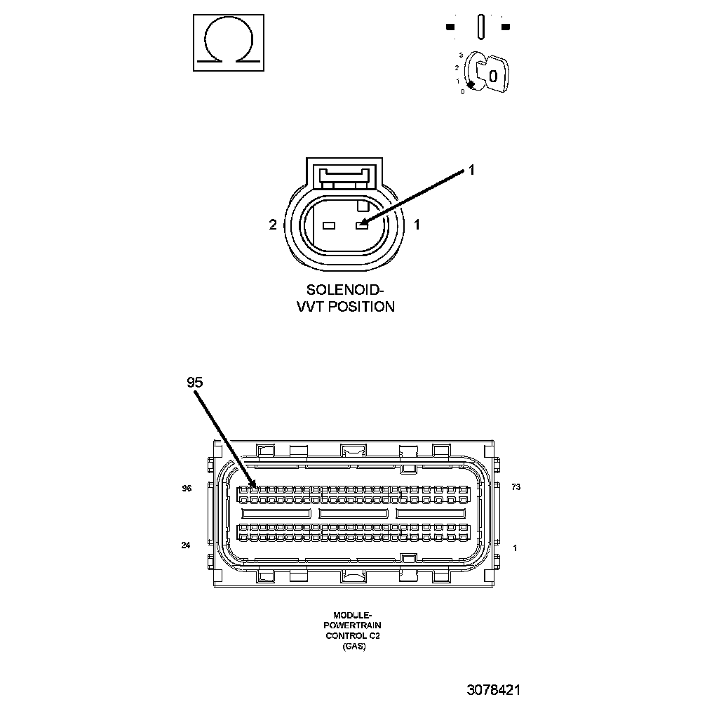 2. Inspect the wiring and connectors between the VVT Exhaust Solenoid 2/2 and the Powertrain Control Module (PCM).