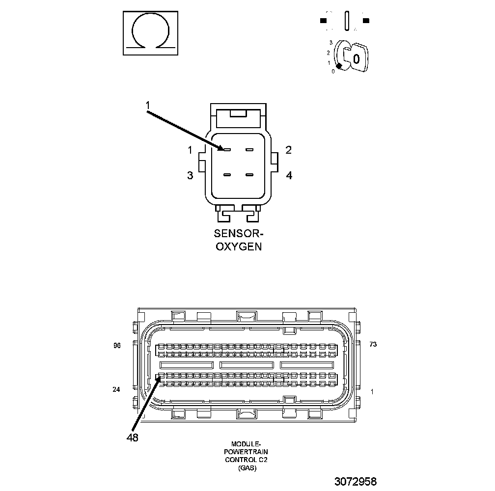 NOTE: O2 Heater Element resistance values should be measured at 21.1° C (70° F). The resistance value will vary with different temperature values.