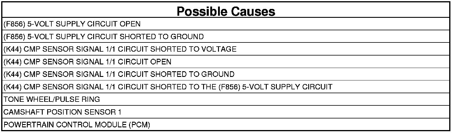 11. (K44) CMP SIGNAL CIRCUIT SHORTED TO THE (F856) 5-VOLT SUPPLY CIRCUIT
