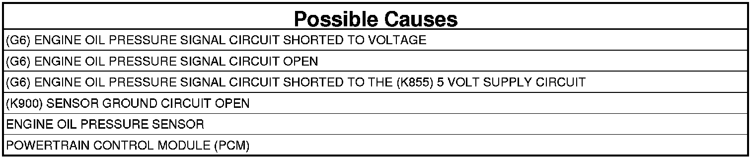 - Repair the short to voltage in the (G6) Engine Oil Pressure Signal circuit.