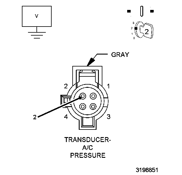 4. Measure the voltage at the (K852) 5-Volt Supply circuit at the A/C Pressure Transducer harness connector.
