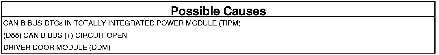 - Repair the (D55) CAN B Bus (+) circuit for an open.