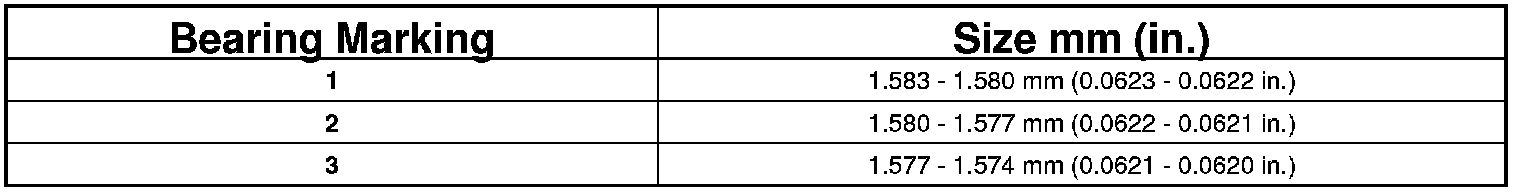 Rod bearing shells are available in three sizes. The chart below identifies the three bearing sizes.