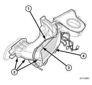 NOTE: The HVAC housing must be removed from the vehicle and disassembled for service of the A/C evaporator.