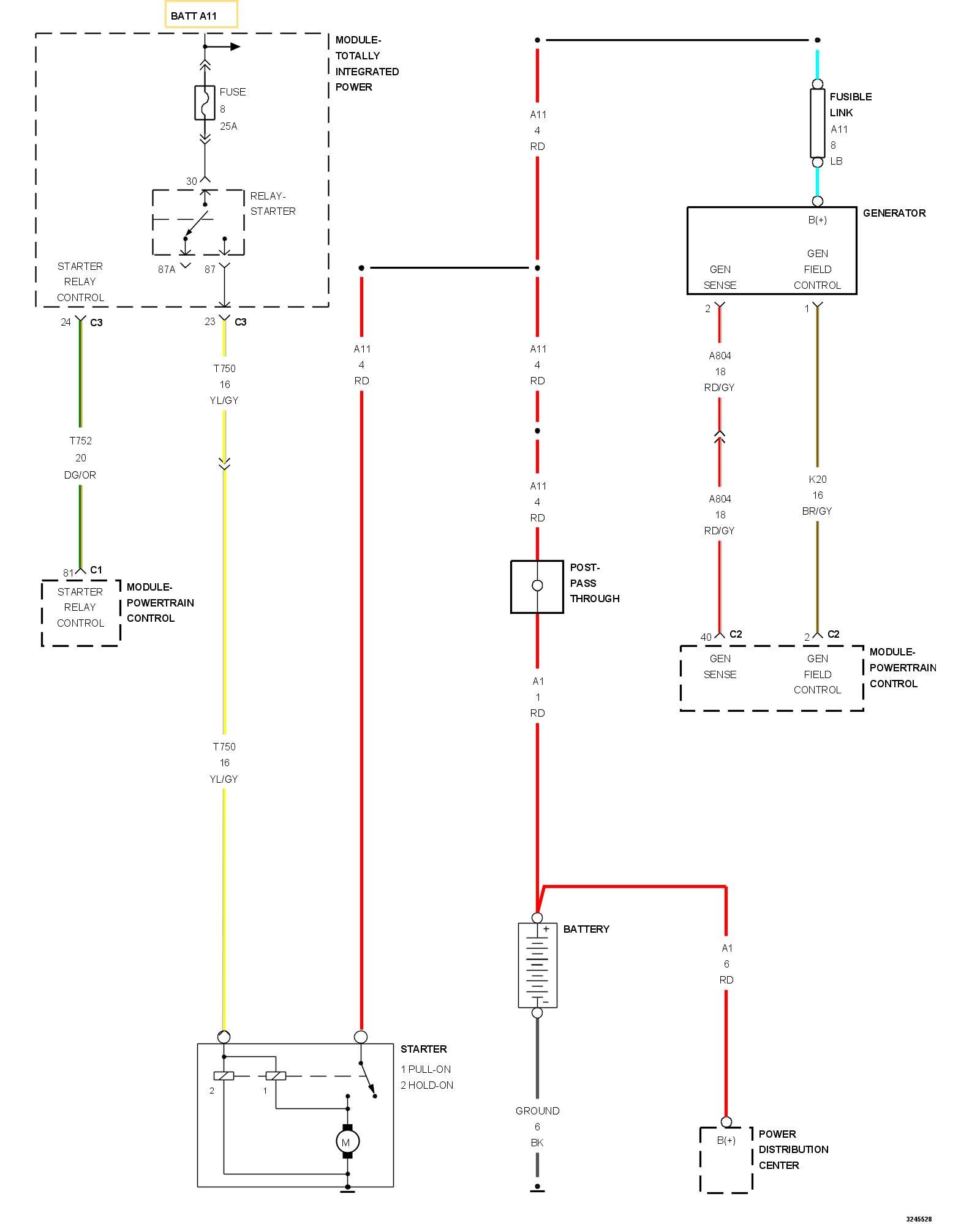 1. Using the wiring diagram/schematic as a guide, inspect the wiring and connectors between the Generator and the Powertrain Control Module (PCM).
