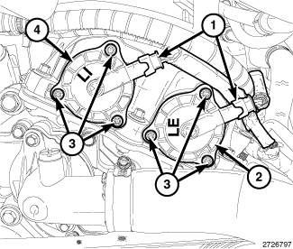 3. Install the variable valve timing solenoid mounting bolts (3) and tighten to 4 Nm (35 in. lbs.).
