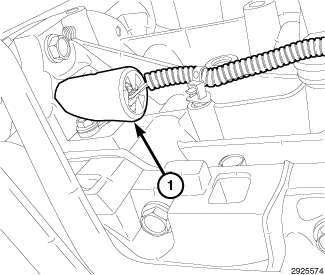 4. Install the sensor (1) into the engine block with a slight rocking and twisting motion.