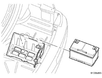 2. Install the battery hold down clamp and bolt. Torque the bolt to 4 Nm (35 in. lbs.).