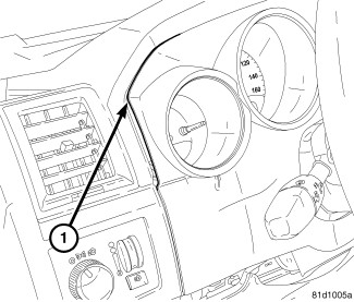 4. Using a trim stick or equivalent, gently pry (1) along the edge of the trim to remove the instrument cluster trim.