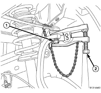 10. Using Puller (2), separate upper ball joint stud (1) from knuckle.