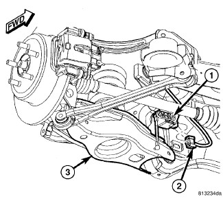 Export Only - If servicing right spring link, connect headlamp leveling sensor (1) link at spring link (3).