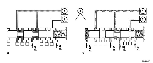 - Determines together with the modulating pressure the pressure reduction at the deactivating shift element as regulated by the overlap regulating valve.