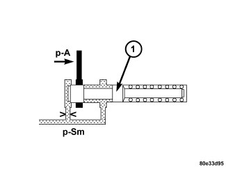 The shift pressure regulating valve (1)(Figure 10) is located in the valve housing of the shift plate. It regulates the shift pressure (p-S).