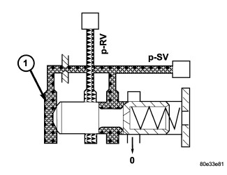 The shift valve pressure regulating valve (1)(Figure 12) is located in the valve housing of the electrohydraulic control module. It regulates the shift valve pressure (p-SV).