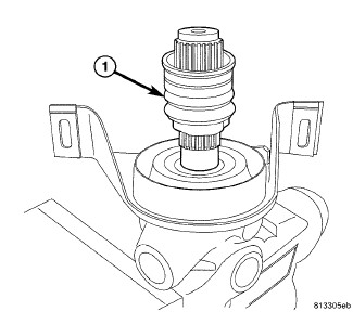 1. Install propeller shaft rear segment into press, supported on joint yoke (3).