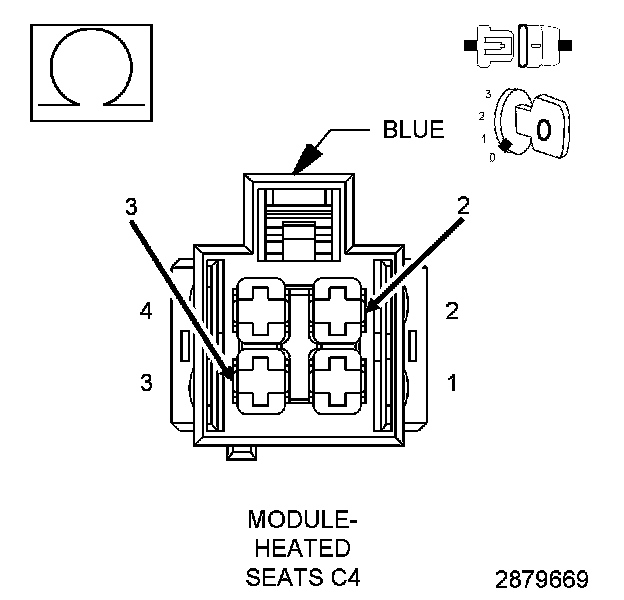 3. Measure the resistance between the (C91) Heated Steering Wheel Feed circuit and the (F931) Fused Ignition Run Control Output circuit at the HSM C4 harness connector.